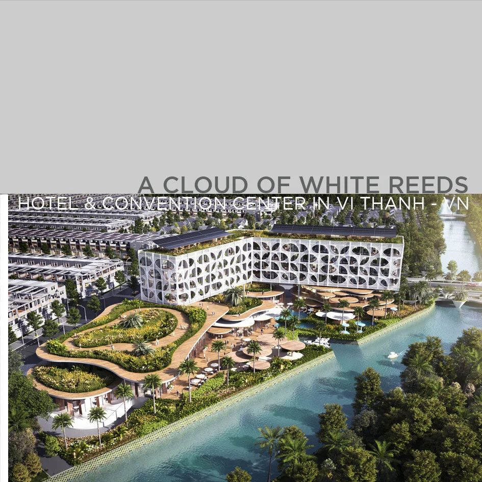 The architectural treatment aims to provide guests with the compelling experience of living in a unique, suspended “white reeds cloud”, floating above the Mekong landscape – the same landscape that presents designers with characteristic elements ready to be reinterpreted in a contemporary language: tropical tree trunks, lotus ponds, mangroves and river plants.